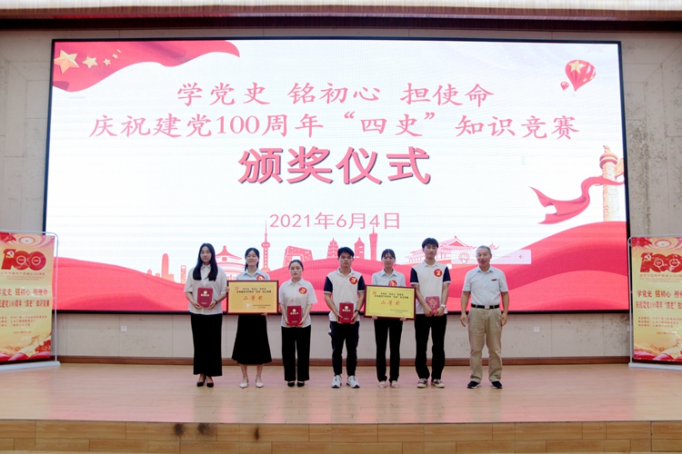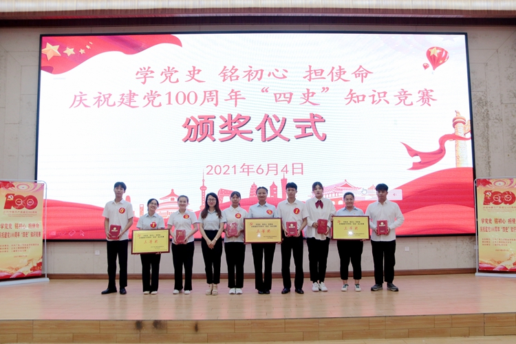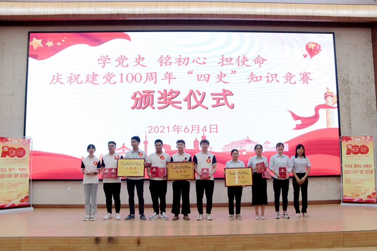 學(xué)四史,憶初心,傳精神,擔(dān)使命。為引導(dǎo)廣大師生學(xué)習(xí)黨史、新中國(guó)史、改革開(kāi)放史、社會(huì)主義發(fā)展史,不忘初心感黨恩、旗幟鮮明跟黨走,汲取智慧力量,堅(jiān)定理想信念,開(kāi)拓創(chuàng)新,努力推進(jìn)學(xué)校的高質(zhì)量發(fā)展,以更加優(yōu)異的成績(jī)?yōu)辄h的百年華誕獻(xiàn)禮。2021年6月4日晚,學(xué)校在圖文信息大樓一樓學(xué)術(shù)報(bào)告廳舉行“學(xué)黨史 銘初心 擔(dān)使命——慶祝建黨100周年‘四史’知識(shí)競(jìng)賽”。