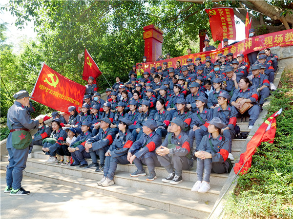 最后一站來到百色起義紀(jì)念館,在百色起義紀(jì)念館大門階梯上,全體黨員身著紅軍裝,整齊肅立,再次聆聽學(xué)校黨委副書記、副校長胡細(xì)木為大家講述“百色起義歷史及紅色故事”。隨后,集體參觀學(xué)習(xí)了百色起義歷史展館廳、英烈廳等展廳。一個(gè)一個(gè)的紅色革命故事,一件一件的紅色革命文物,洗滌和凈化了我們內(nèi)心深處的靈魂,更加堅(jiān)定了我們在新時(shí)代賡續(xù)紅色血脈、傳承紅色精神的理想信念。