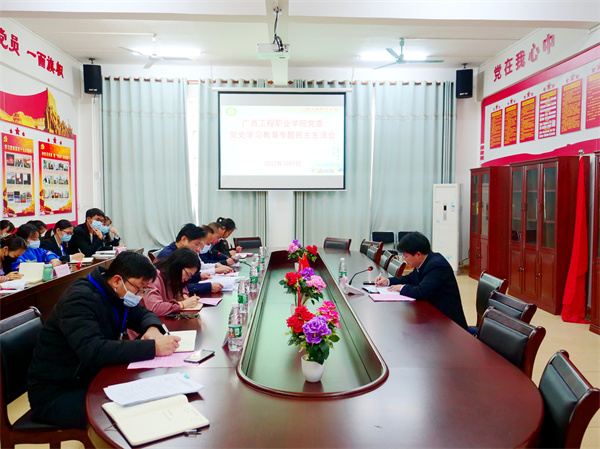 呂書(shū)記強(qiáng)調(diào)指出,班子成員要帶頭進(jìn)一步提高政治站位,全面學(xué)習(xí)貫徹習(xí)近平新時(shí)代中國(guó)特色社會(huì)主義思想,抓好常態(tài)化黨史學(xué)習(xí)教育,深刻感悟“兩個(gè)確立”的決定性意義,深刻感悟黨堅(jiān)持把馬克思主義同中國(guó)具體實(shí)際相結(jié)合、同中華優(yōu)秀傳統(tǒng)文化相結(jié)合的非凡歷程,牢固樹(shù)立正確的黨史觀(guān)。要堅(jiān)持用習(xí)近平新時(shí)代中國(guó)特色社會(huì)主義思想武裝頭腦、指導(dǎo)實(shí)踐、推動(dòng)工作,帶頭真學(xué)、真信、真懂、真用,帶頭牢記我們黨是什么、要干什么這個(gè)根本問(wèn)題,心懷 “國(guó)之大者”,不斷增強(qiáng)“四個(gè)意識(shí)”,堅(jiān)定“四個(gè)自信”,做到“兩個(gè)維護(hù)”。要堅(jiān)持貫徹新發(fā)展理念,履職盡責(zé)、擔(dān)當(dāng)作為,聚焦新冠肺炎疫情防控、保持經(jīng)濟(jì)發(fā)展、深化改革開(kāi)放、維護(hù)社會(huì)穩(wěn)定等正在做的工作,不折不扣把黨中央決策部署落實(shí)到位;帶頭踐行以人民為中心的發(fā)展思想,尊重群眾意愿,為群眾辦實(shí)事解難題,有效保障改善民生,增強(qiáng)人民群眾獲得感幸福感安全感,確保黨永遠(yuǎn)保持同人民群眾的血肉聯(lián)系;要堅(jiān)定扛起管黨治黨的政治責(zé)任,帶頭深刻汲取黨史中正反兩方面經(jīng)驗(yàn),履行全面從嚴(yán)治黨責(zé)任,旗幟鮮明講政治,嚴(yán)守黨的政治紀(jì)律和政治規(guī)矩,落實(shí)中央八項(xiàng)規(guī)定及其實(shí)施細(xì)則精神,持續(xù)用力糾“四風(fēng)”、樹(shù)新風(fēng)。要深入學(xué)習(xí)貫徹習(xí)近平總書(shū)記關(guān)于教育的重要論述,特別是對(duì)發(fā)展職業(yè)教育的重要批示精神,以及視察廣西“4·27”重要講話(huà)精神和對(duì)廣西工作的系列重要指示精神,推進(jìn)黨建工作與業(yè)務(wù)工作深度融合,勇于擔(dān)當(dāng)、攻堅(jiān)克難,統(tǒng)籌抓好新冠肺炎疫情防控和學(xué)校各項(xiàng)工作,確保中央精神和自治區(qū)黨委、百色市委各項(xiàng)決策部署在學(xué)校落地生根,勇毅前行,努力開(kāi)創(chuàng)新時(shí)代廣西工程職業(yè)學(xué)院高質(zhì)量發(fā)展新局面,為建設(shè)新時(shí)代中國(guó)特色社會(huì)主義壯美廣西作出新的更大貢獻(xiàn),以?xún)?yōu)異成績(jī)迎接黨的二十大勝利召開(kāi)。
