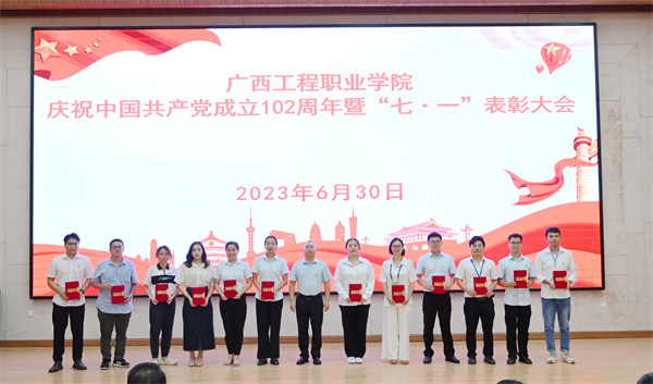 大會(huì)在莊嚴(yán)的國(guó)歌聲中拉開帷幕。黨委副書記黃秋霞帶領(lǐng)大家重溫入黨誓詞。學(xué)校紀(jì)委書記、副校長(zhǎng)彭高彬宣讀了《中共廣西工程職業(yè)學(xué)院委員會(huì)關(guān)于表彰優(yōu)秀共產(chǎn)黨員、優(yōu)秀黨務(wù)工作者、先進(jìn)基層黨組織和“學(xué)習(xí)強(qiáng)國(guó)”學(xué)習(xí)標(biāo)兵的決定》。與會(huì)學(xué)校黨政領(lǐng)導(dǎo)班子分別為受表彰的優(yōu)秀共產(chǎn)黨員、優(yōu)秀黨務(wù)工作者、先進(jìn)基層黨組織和“學(xué)習(xí)強(qiáng)國(guó)”學(xué)習(xí)標(biāo)兵頒獎(jiǎng)。