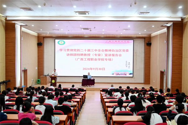9月30日上午,學(xué)習(xí)貫徹黨的二十屆三中全會精神自治區(qū)黨委講師團(tuán)特聘教授(專家)宣講報告會在我校圖文信息大樓一樓學(xué)術(shù)報告廳舉行,自治區(qū)黨委講師團(tuán)特聘教授(專家)、廣西師范大學(xué)馬克思主義學(xué)院孟憲平教授作宣講報告。