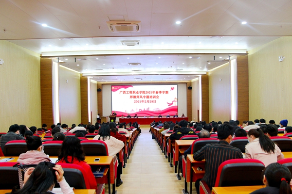為進(jìn)一步加強(qiáng)我校師德師風(fēng)建設(shè),提高全校教職工的職業(yè)道德素養(yǎng),促進(jìn)教職工以優(yōu)良的作風(fēng)和昂揚(yáng)的精神面貌投入到新學(xué)期的各項(xiàng)工作中,2021年2月28日,學(xué)校在圖文信息大樓召開新學(xué)期師德師風(fēng)專題教育培訓(xùn)會(huì),學(xué)校黨政領(lǐng)導(dǎo)及全體教職工參加培訓(xùn)會(huì)。會(huì)議由副校長羅艷妮主持。