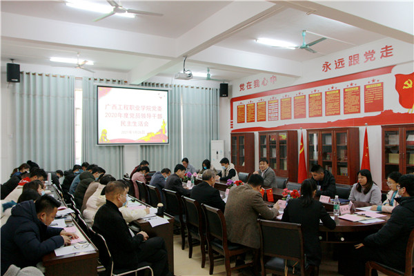 2021年1月26日下午,我校2020年度黨員領導干部民主生活會在圖書館一樓黨員活動室召開。百色市委教育工委委員、市教育局黨組成員、副局長韋海溢到會督導。我校黨委書記呂偉斌、紀委書記、董事長李益以及黨委領導班子其他成員參加會議,黨委辦公室、各黨支部書記及支委等列席會議。