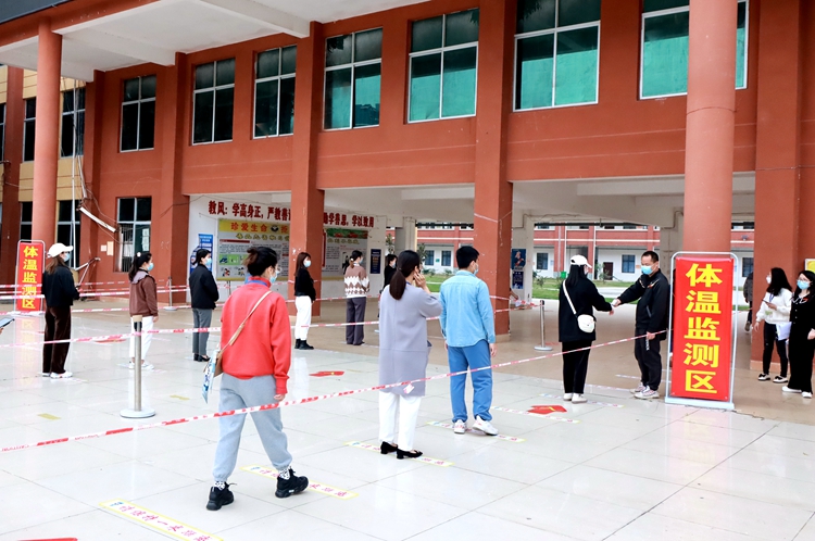 各組工作人員提前到崗,互測體溫并進行記錄。返校學生按照規(guī)定在校門外排隊、掃碼、測溫、行李消殺等。值班人員在指定位置迎接學生入校,并持續(xù)觀看紅外線熱感測溫儀的監(jiān)測數(shù)據(jù),若發(fā)現(xiàn)異常情況,則由校醫(yī)將該學生帶至臨時隔離區(qū),并通知上級防控中心。