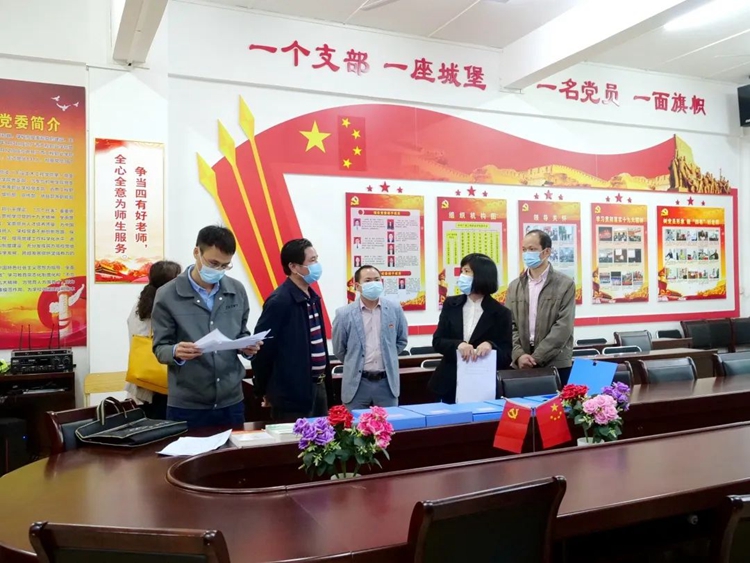 調(diào)研組參觀學(xué)校黨建宣傳欄、“四史”學(xué)習(xí)教育文化長廊,查閱學(xué)校宣傳思想工作臺賬,在圖書館黨員活動室召開座談會。