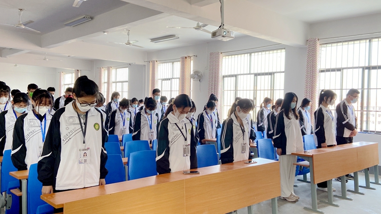 同學(xué)們集體默哀深切悼念抗疫英雄