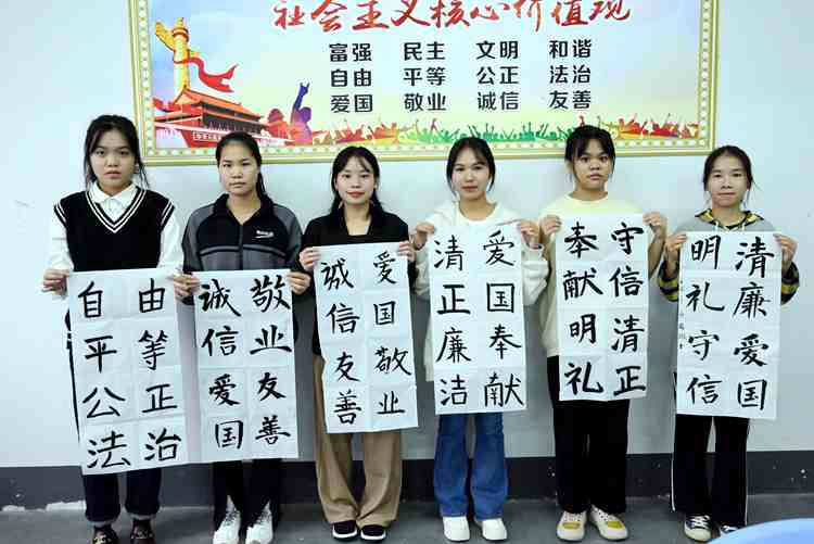 為進(jìn)一步推進(jìn)“清廉學(xué)校”建設(shè),營造風(fēng)清氣正的教育生態(tài)和發(fā)展環(huán)境,提高廣大教職工為人師表、廉潔從教、愛崗敬業(yè)的意識,增強廣大學(xué)生干凈做人、規(guī)范做事、遵紀(jì)守法的自覺性,幫助青年學(xué)生扣好人生第一顆扣子,2022年11月中旬,廣西工程職業(yè)學(xué)院開展以“妙筆寫清廉 翰墨揚正氣”為主題的廉潔文化進(jìn)書法課堂教育活動。