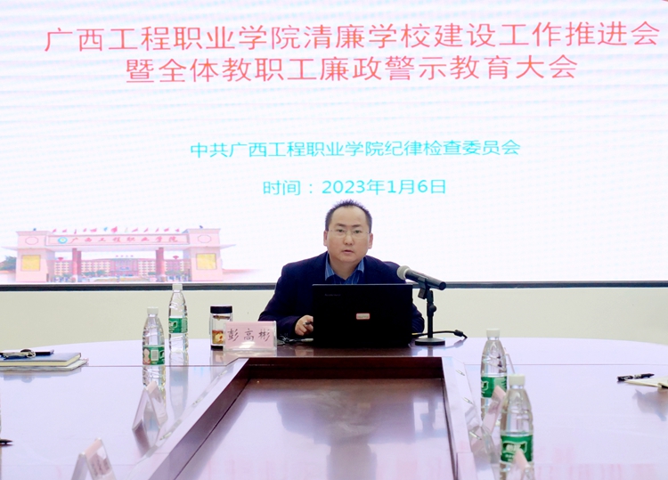 學(xué)校黨委書記、督導(dǎo)專員蒙本曼,黨委副書記黃秋霞,紀(jì)委書記、副校長彭高彬,副校長羅艷妮、黃德偉、蔣茂麗,校長助理梁善雅,中層以上干部參加線下會(huì)議,學(xué)校教職工通過線上收聽收看會(huì)議直播。紀(jì)檢委員藍(lán)桂敏作廉政警示教育專題講座,紀(jì)委書記彭高彬主持會(huì)議。