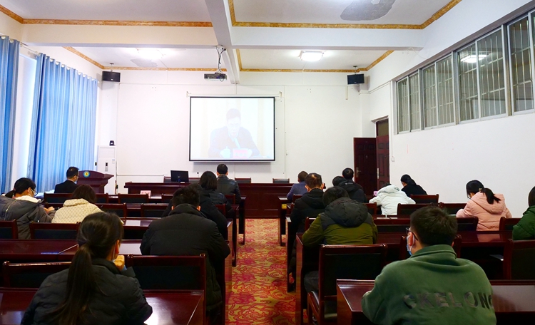 學(xué)校在圖書(shū)館報(bào)告廳分會(huì)場(chǎng)參加視頻會(huì)議
