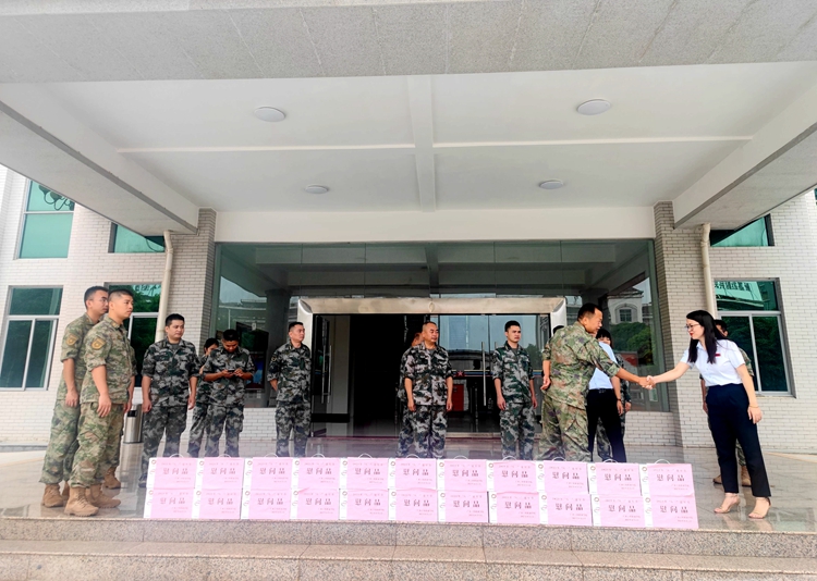 活動中,我校領(lǐng)導(dǎo)、教師向部隊官兵致以節(jié)日問候和美好祝愿,感謝平果市武裝部一直以來支持學(xué)校軍訓(xùn)、國防、征兵等校園建設(shè)發(fā)展工作,并送上了慰問品。