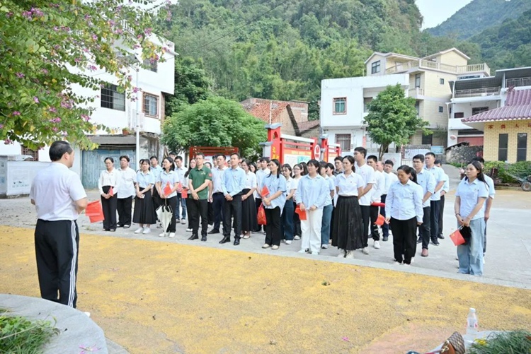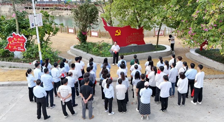 在趙世同紀(jì)念館前面空地,學(xué)校黨委書記、督導(dǎo)專員蒙本曼帶領(lǐng)黨員們重溫入黨誓詞,隨后在現(xiàn)場給黨員們講了一堂精彩的微黨課。