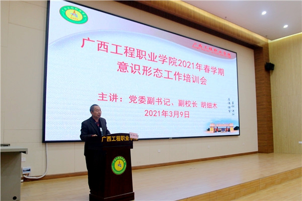 為全面部署2021年意識(shí)形態(tài)工作,落實(shí)意識(shí)形態(tài)工作責(zé)任制,3月9日下午,廣西工程職業(yè)學(xué)院在圖文信息大樓學(xué)術(shù)報(bào)告廳舉行2021年春學(xué)期意識(shí)形態(tài)工作培訓(xùn)會(huì),校黨委書(shū)記呂偉斌,校黨委副書(shū)記、副校長(zhǎng)胡細(xì)木及校長(zhǎng)助理黃德偉、黃秋霞等黨政領(lǐng)導(dǎo),各部門(mén)負(fù)責(zé)人、行政人員、無(wú)課的專任教師和輔導(dǎo)員等同志參加培訓(xùn)會(huì),培訓(xùn)會(huì)由胡細(xì)木同志主持。