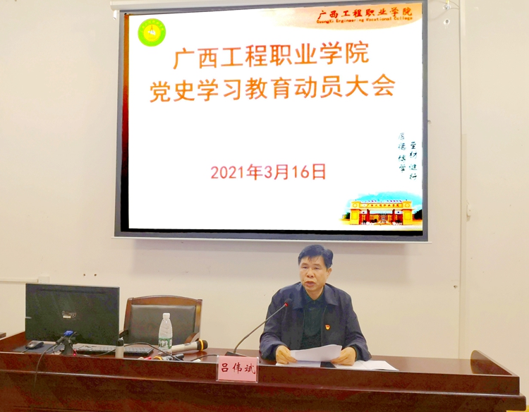 3月16日,廣西工程職業(yè)學(xué)院召開(kāi)黨史學(xué)習(xí)教育動(dòng)員大會(huì),學(xué)校黨委書(shū)記呂偉斌出席會(huì)議并作動(dòng)員講話,會(huì)議由學(xué)校黨委副書(shū)記、副校長(zhǎng)胡細(xì)木主持,學(xué)校校長(zhǎng)唐林、副校長(zhǎng)羅艷妮、校長(zhǎng)助理黃秋霞等校級(jí)領(lǐng)導(dǎo),全體教職工黨員、在校學(xué)生黨員等參加會(huì)議。