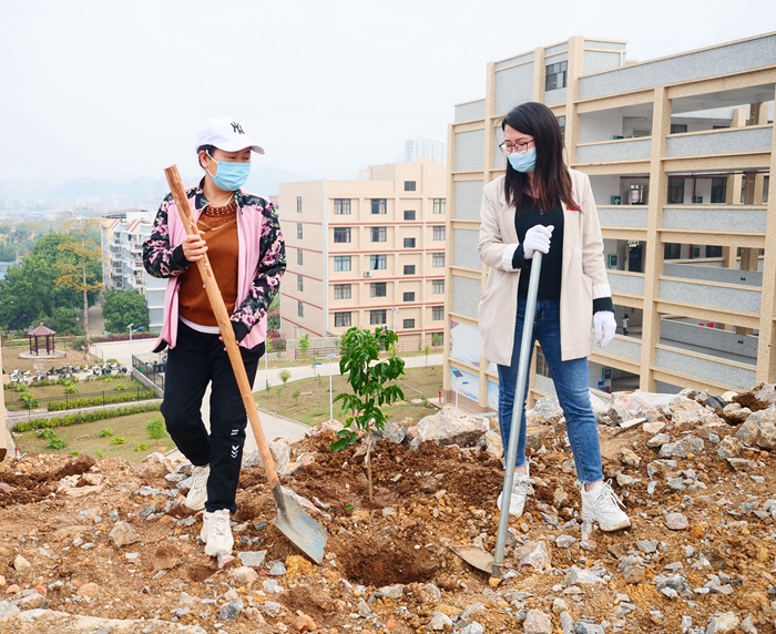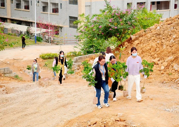 十年樹木,百年樹人。此次植樹活動,老師們栽種了適合當?shù)厮翚夂蛏L的桑果、柚子、黃皮、枇杷、桂花等樹種130余棵,綠化美化了校園環(huán)境,增強了環(huán)保意識,用實際行動踐行習近平總書記“綠水青山就是金山銀山”重要思想,積極推進綠色校園創(chuàng)建工作,助力綠色發(fā)展,為新時代生態(tài)文明建設(shè)貢獻力量。