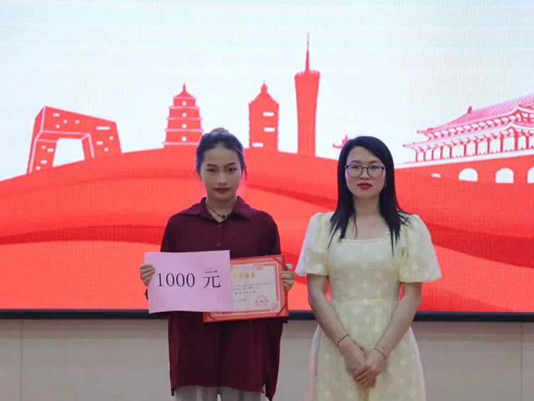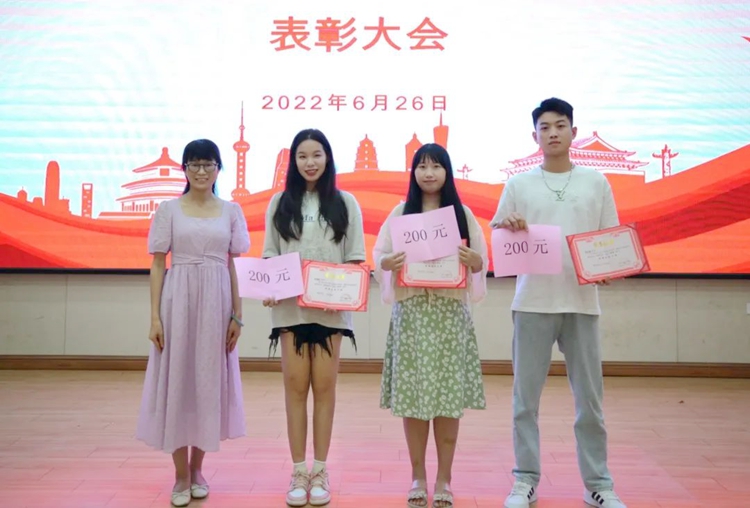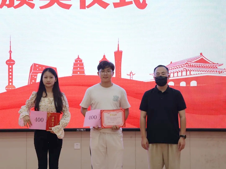 黃秋霞副書記為獲得一等獎同學(xué)頒獎