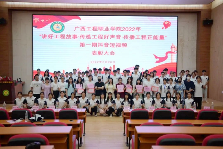 講好工程故事,傳遞工程好聲音,傳播工程正能量,2022年6月26日,廣西工程職業(yè)學(xué)院2022年第一期抖音短視頻表彰大會在圖文信息大樓一樓學(xué)術(shù)報告廳舉行。