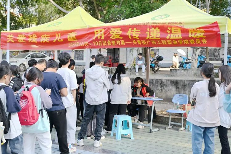 扶弱助殘是中華民族的傳統(tǒng)美德,為給殘疾兒童營造充滿關(guān)愛、健康成長的生活環(huán)境,讓他們與健全兒童共享陽光雨露,同在藍(lán)天下快樂成長,2023年12月8日-10日,廣西工程職業(yè)學(xué)院在綜合食堂服務(wù)區(qū)開展“關(guān)愛殘疾兒童,用愛傳遞溫暖”捐贈活動(dòng)。廣大師生積極參與,傳播扶殘助殘兒童的正能量,他們以實(shí)際行動(dòng)向需要幫助的殘疾兒童給予援助之手,為公益事業(yè)貢獻(xiàn)出自己的一份綿薄之力。