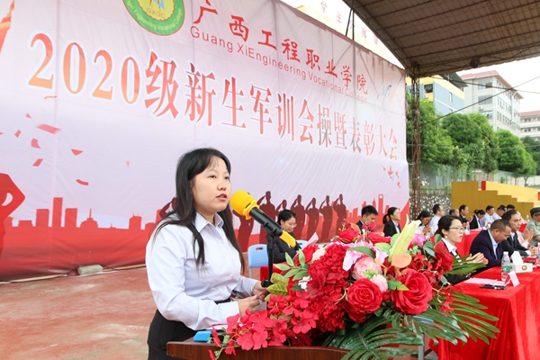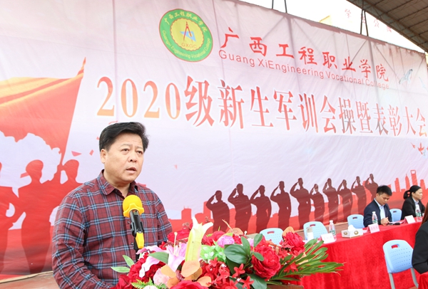 平果市大學園區(qū)黨工委書記、管理服務(wù)中心黨組書記楊敏捷講話,他首先對圓滿完成軍訓任務(wù)的我校2020級學子表示祝賀,向長期以來支持我校國防教育工作的廣西三軍國防教育基地學生軍訓教官表示感謝。