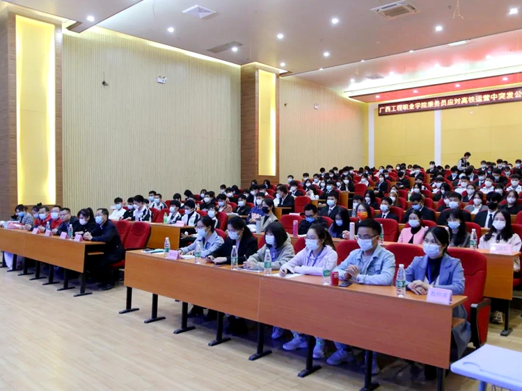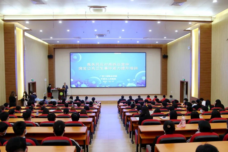 為進(jìn)一步提升學(xué)生應(yīng)對(duì)突發(fā)公共衛(wèi)生事件的能力,鞏固專業(yè)知識(shí),有效預(yù)防、及時(shí)控制和消除突發(fā)公共衛(wèi)生事件的危害,保障乘客身體健康與生命安全,維護(hù)正常的社會(huì)秩序。我校鐵道與航空學(xué)院聯(lián)合平果市人民醫(yī)院于12月17日下午在校圖文信息大樓三樓學(xué)術(shù)報(bào)告廳開展乘務(wù)員應(yīng)對(duì)高鐵運(yùn)營(yíng)中突發(fā)公共衛(wèi)生事件能力提升培訓(xùn)活動(dòng)暨平果市人民醫(yī)院“急救知識(shí)進(jìn)校園”、“急救技能培訓(xùn)”志愿服務(wù)活動(dòng) 。