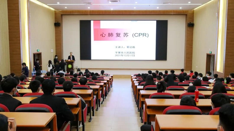 彭高彬副校長(zhǎng)致辭,他對(duì)平果市人民醫(yī)院領(lǐng)導(dǎo)、專家的到來(lái)的表示熱烈的歡迎,并希望同學(xué)們提高認(rèn)識(shí),珍惜此次難得的學(xué)習(xí)機(jī)會(huì),在培訓(xùn)中勤學(xué)善思、學(xué)思結(jié)合、知行合一,切實(shí)掌握急救技能,夯實(shí)專業(yè)知識(shí),提高自救和互救能力,為今后的學(xué)習(xí)和工作打下堅(jiān)實(shí)的基礎(chǔ)。