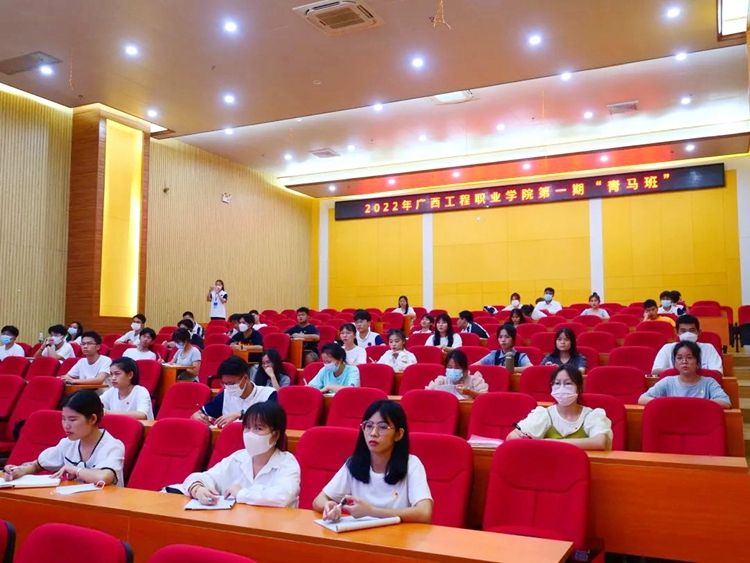 為深入學(xué)習(xí)貫徹習(xí)近平總書(shū)記關(guān)于青年工作的重要思想,引領(lǐng)青年學(xué)生增強(qiáng)“四個(gè)意識(shí)”、堅(jiān)定“四個(gè)自信”、做到“兩個(gè)維護(hù)”,引領(lǐng)青馬學(xué)員更堅(jiān)定不移聽(tīng)黨話、矢志不渝跟黨走,追尋信仰之光,勇?lián)啻菏姑?,以?shí)際行動(dòng)迎接黨的二十大勝利召開(kāi)。6月13日,廣西工程職業(yè)學(xué)院2022年第一期“青馬班”第一課在圖文信息大樓報(bào)告廳正式開(kāi)課。此次專(zhuān)題課由校團(tuán)委書(shū)記梁鳳琴主講,第一期“青馬班”學(xué)員參加了培訓(xùn)。