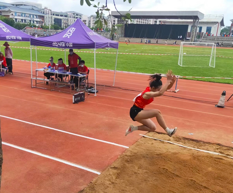我校學(xué)生秉承更快、更高、更強、更團(tuán)結(jié)的體育精神,在比賽中賽出風(fēng)格、賽出水平。其中,在高職高專組女子三級跳遠(yuǎn)賽項中,教育學(xué)院21級學(xué)前教育16班韋麗莉同學(xué)頑強拼搏,不畏困難,在激烈的競爭中,成功晉級決賽,并榮獲第三名的好成績!