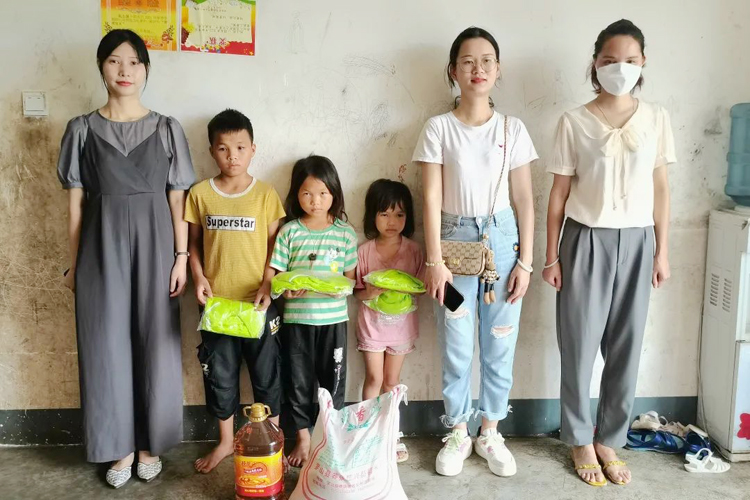 此次暑期“三下鄉(xiāng)”實(shí)踐活動(dòng),校團(tuán)委書(shū)記梁鳳琴等指導(dǎo)老師帶隊(duì)走訪家境困難的留守兒童,并送上米、油和衣服,希望孩子們茁壯成長(zhǎng)成才。