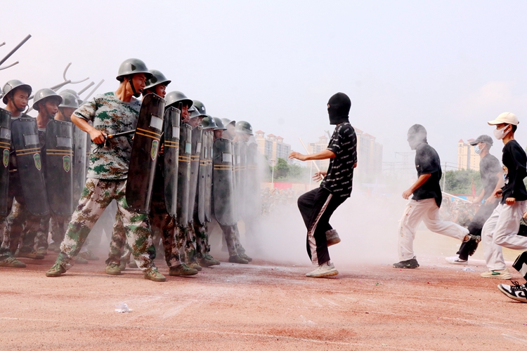 2022級新生軍訓匯報表演正式開始。2022級全體新生各方隊依次進行分列式、擺字、手語操、拳術(shù)、應急棍、匕首操、戰(zhàn)術(shù)(防爆隊形)表演。他們軍姿標準、志氣高昂、口號嘹亮、動作干凈利落、精神抖擻、意氣風發(fā),英姿颯爽,充分展示了新時代青年學生青春昂揚、英武豪邁的精神風貌。匯報表演在老師、同學們的陣陣掌聲和喝彩聲中圓滿結(jié)束。