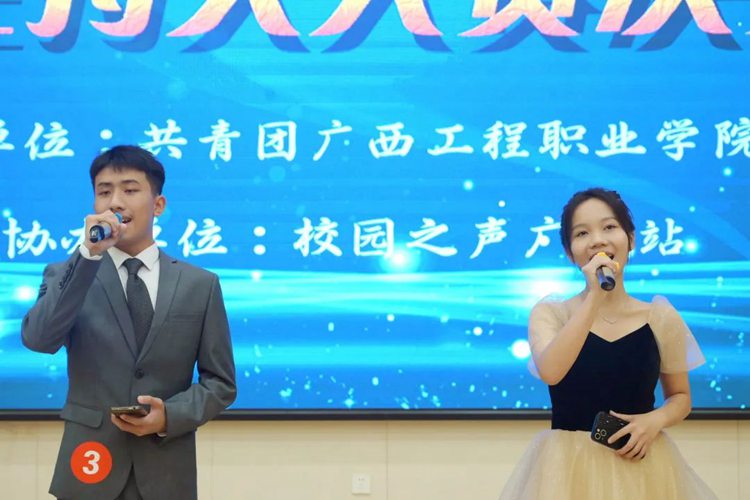 為學(xué)習(xí)宣傳貫徹黨的二十大精神,用語言生動描繪新時代黨和國家取得的輝煌成就,用聲音精彩呈現(xiàn)黨和國家在推進(jìn)偉大復(fù)興新征程中的新氣象、新精神。同時,為了營造富有激情、青春的校園文化氛圍,提高學(xué)生的人文素質(zhì)和邏輯思辨、溝通表達(dá)能力,廣西工程職業(yè)學(xué)院于12月8日晚在圖文信息大樓五樓學(xué)術(shù)報告廳舉辦“激揚(yáng)青春夢,奮進(jìn)新征程”主持人大賽決賽。