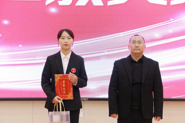 經(jīng)管學(xué)院黨支部書記、院長龐英連為榮獲二等獎的選手頒獎
