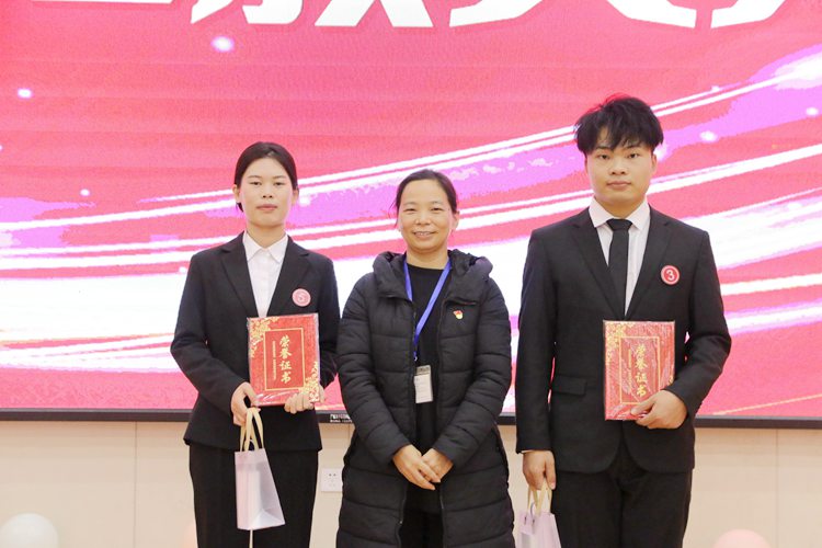 經(jīng)管學(xué)院黨支部副書記廖嬌為榮獲三等獎的選手頒獎