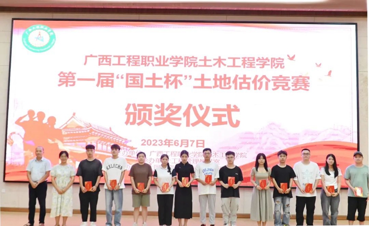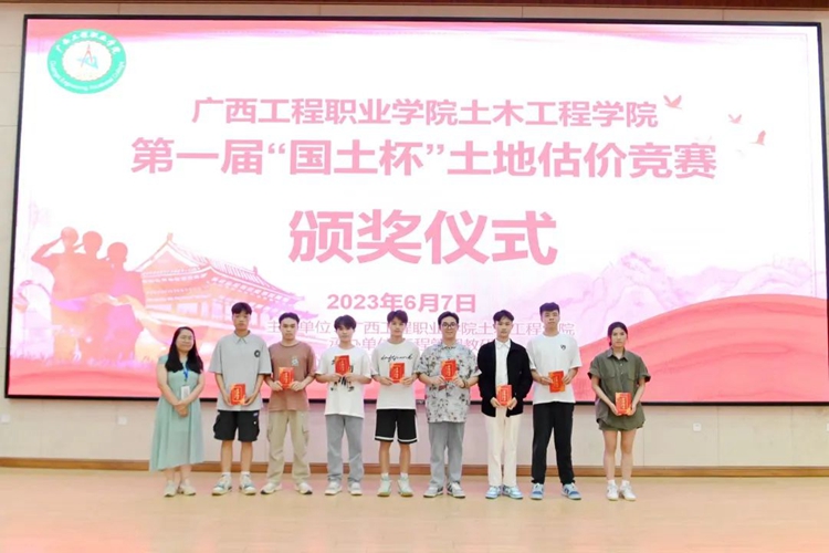 廣西工程職業(yè)學(xué)院土木工程學(xué)院第一屆“國(guó)土杯”土地估價(jià)競(jìng)賽的成功舉辦,拓展了國(guó)土資源調(diào)查與管理專業(yè)大學(xué)生對(duì)土地估價(jià)前沿領(lǐng)域的認(rèn)識(shí),進(jìn)一步提升了大學(xué)生的估價(jià)實(shí)踐技能與實(shí)踐創(chuàng)新能力,充分發(fā)揮了以賽促建、以賽促教、以賽促學(xué)的作用。