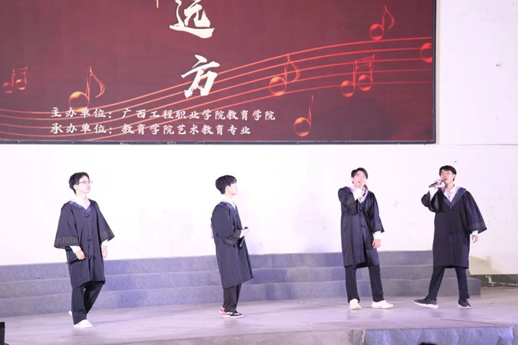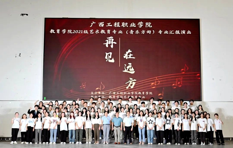 青春盛世,巍巍學(xué)府藏不住奕奕風(fēng)采,奮斗正當(dāng)時(shí)。歲月流逝,飛馳的時(shí)光帶不走永恒的夢(mèng)想,逐夢(mèng)在路上。時(shí)光荏苒,流逝的歲月?lián)]不去執(zhí)著的信念,圓志在指尖腳下。2023年6月12日晚,廣西工程職業(yè)學(xué)院教育學(xué)院在體育館舉行2021級(jí)藝術(shù)教育專(zhuān)業(yè)(音樂(lè)方向)“再見(jiàn)•在遠(yuǎn)方”專(zhuān)業(yè)匯報(bào)演出。
