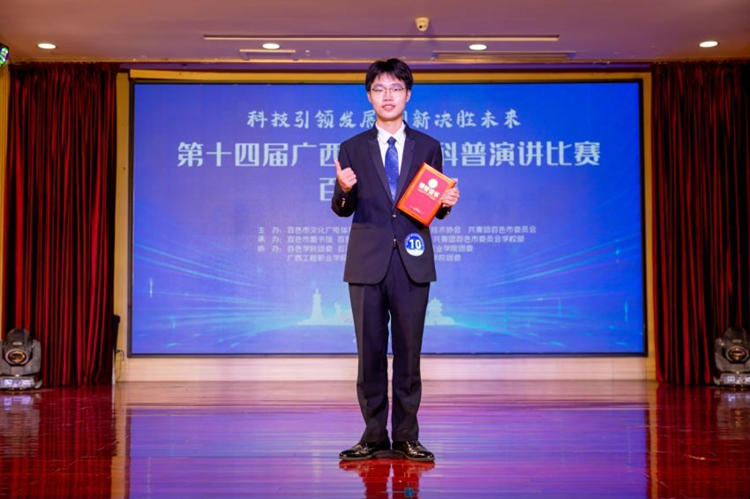 2024年10月19日,我校學子參加由百色市文化廣電體育和旅游局、百色市科學技術協(xié)會、共青團百色市委員會聯(lián)合主辦的“科技引領發(fā)展 創(chuàng)新決勝未來”——第十四屆廣西大學生科普演講比賽百色選拔賽,并榮獲一等獎1項,二等獎1項。