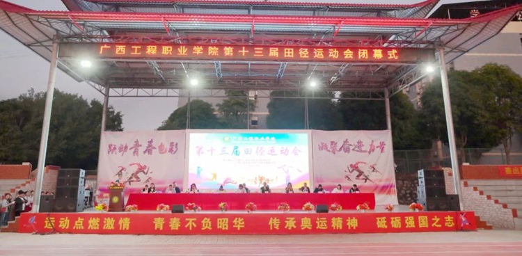 黨委副書記、校長羅艷妮致閉幕詞,并宣布廣西工程職業(yè)學(xué)院2024年第十三屆田徑運(yùn)動(dòng)會(huì)圓滿閉幕。
