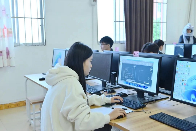 選手們全神貫注、各顯身手,緊張的氛圍彌漫在每一個角落。他們熟練地操作著CAD軟件,眼神專注地盯著屏幕,手指在鍵盤和鼠標上快速跳躍。
