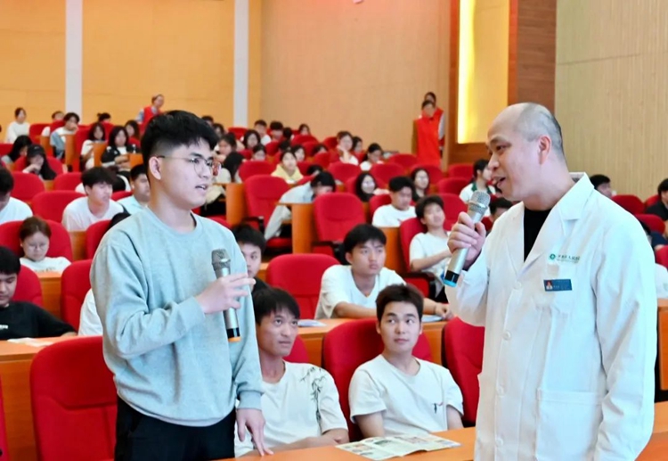 眼科副主任韋文慰為學(xué)子們帶來題為《AI協(xié)同護航,共防青光眼盲》的知識講座。講座圍繞青光眼的定義、危害、科學(xué)預(yù)防三大板塊,深入淺出地講解了青光眼這個“視力小偷”對視力健康的威脅,并重點科普如何治療、預(yù)防青光眼的實用技巧。