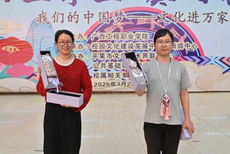 工作人員認(rèn)真核對(duì)集章卡,確認(rèn)無(wú)誤后,將精心準(zhǔn)備的繡球獎(jiǎng)品遞到同學(xué)們手中。同學(xué)們臉上綻放出燦爛的笑容,興奮之情溢于言表。繡球色彩絢麗、制作精美,不僅是一份獎(jiǎng)品,更是壯鄉(xiāng)傳統(tǒng)文化的象征,承載著吉祥與祝福。