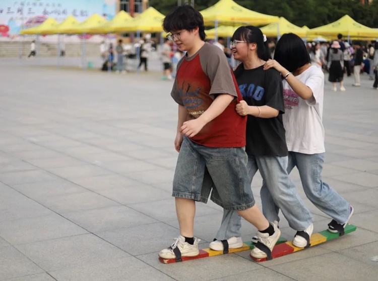 圖為三人板鞋比賽現(xiàn)場(chǎng)