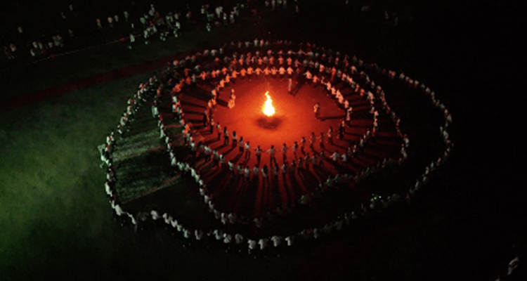 教育學院和藝術設計學院的同學們手拉手圍繞篝火盡情歡跳,熊熊燃燒的篝火象征著熱情與活力,大家在火光中釋放自我,共同沉浸在這歡樂的海洋,將晚會的氣氛推向了最高潮。