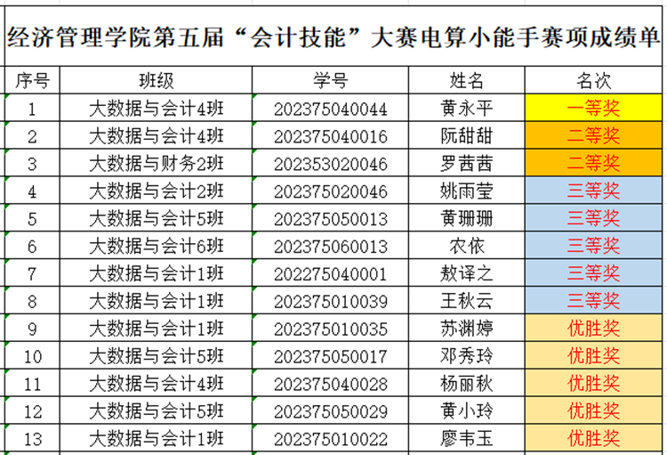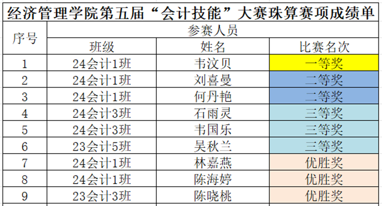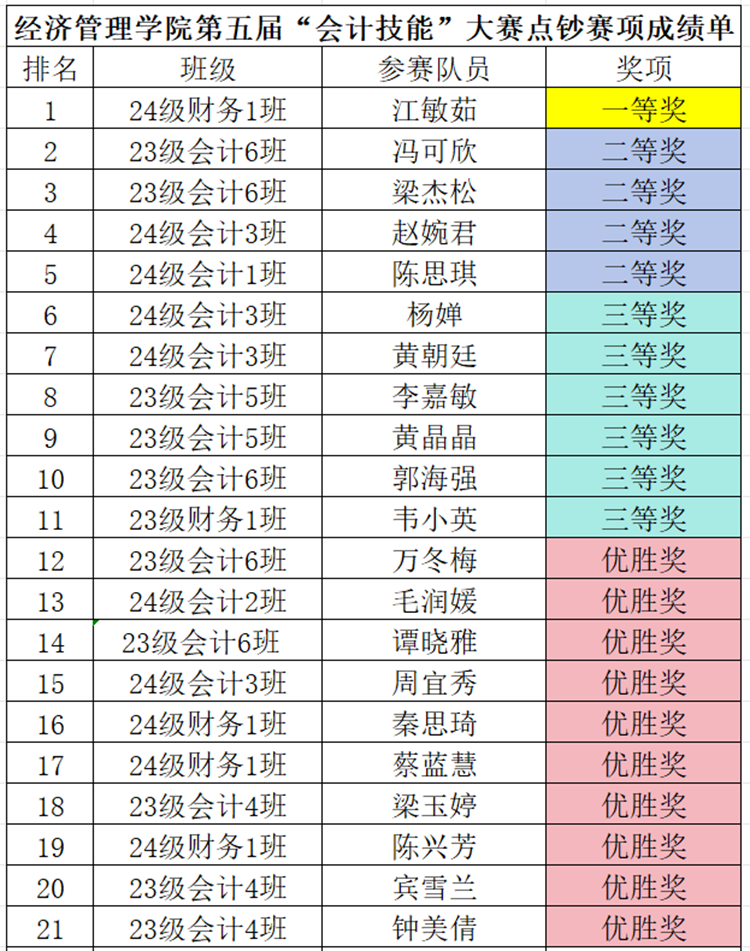 經濟管理學院第五屆會計技能大賽成績揭曉,恭喜獲獎選手!同學們在四大競賽單元展現扎實功底,點鈔利落、傳票飛翻、珠算靈動、電算嫻熟,希望大家秉持專業(yè)精神,在未來會計學習工作中發(fā)光發(fā)熱 。