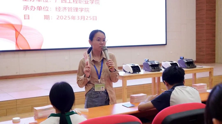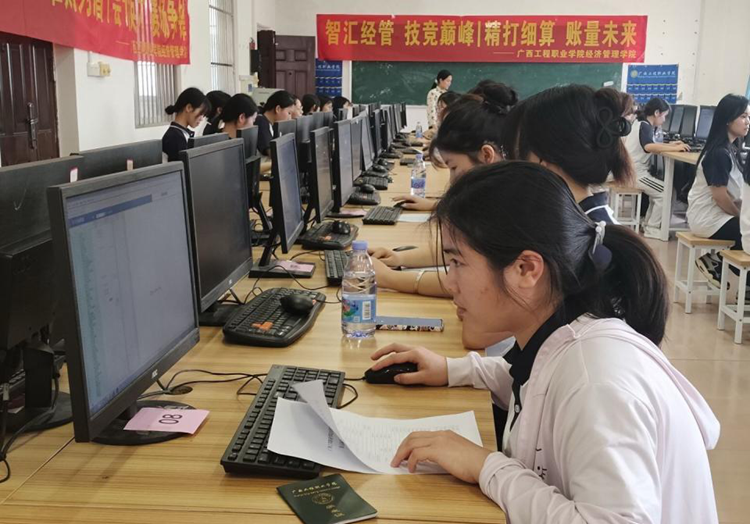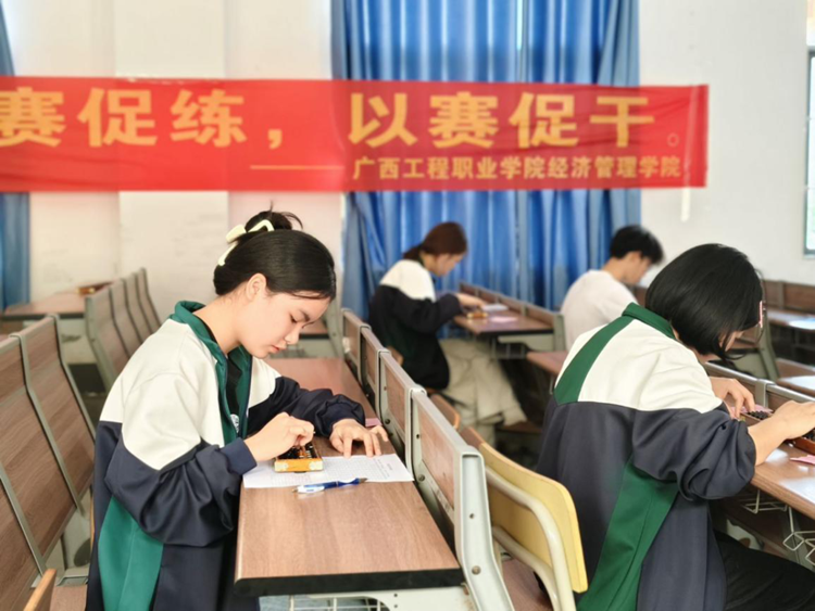 在數字經濟與傳統(tǒng)文化交融共生的時代背景下,廣西工程職業(yè)學院經濟管理學院于2025年3月25日舉辦第五屆會計技能大賽。本屆賽事以“賽出水平,展現風采,鑄就會計人才”為主題,分別在圖文信息大樓五樓、經管304實訓室及第二教學樓多個賽場同步舉行,設置點鈔、翻打傳票、珠算(非遺)、電算小能手四大競賽單元,構建起傳統(tǒng)技藝與現代技術交相輝映的育人平臺。