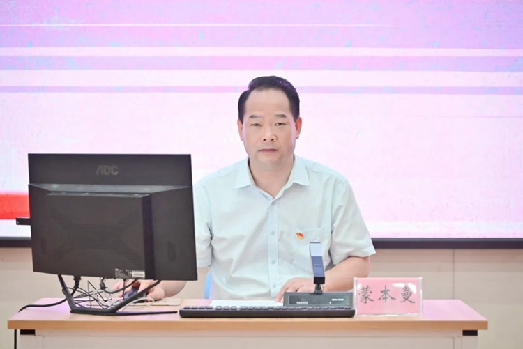圖為黨委書記、政府督導(dǎo)專員蒙本曼講話