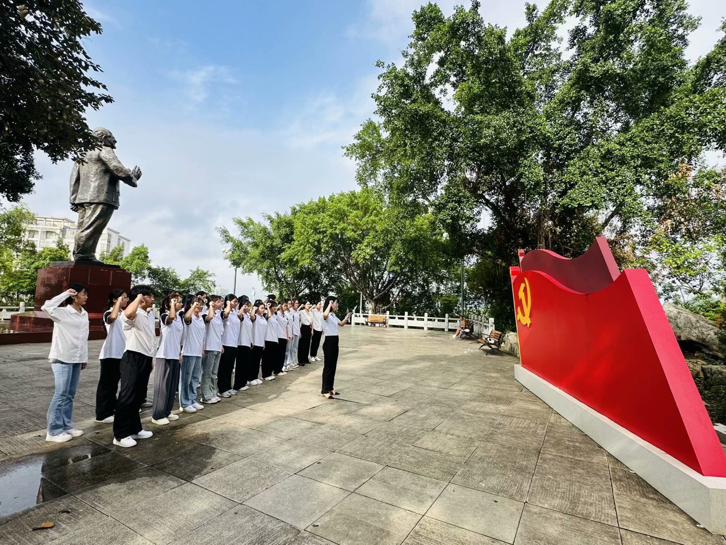 參加此次主題黨日活動(dòng)的同志有:廣西工程職業(yè)學(xué)院校長(zhǎng)助理梁善雅、教育學(xué)院黨支部書(shū)記梁鳳琴、教育學(xué)院黨支部副書(shū)記盧燕梅、教育學(xué)院組織委員兼紀(jì)檢委員葉健芳、教育學(xué)院統(tǒng)戰(zhàn)委員王冬、教育學(xué)院辦公室主任農(nóng)淑娟、教育學(xué)院專任教師周文雯以及2023年新發(fā)展黨員。全體黨員在鄧公山紅色主題公園,一起重溫入黨誓詞,一起強(qiáng)化黨性修養(yǎng)。