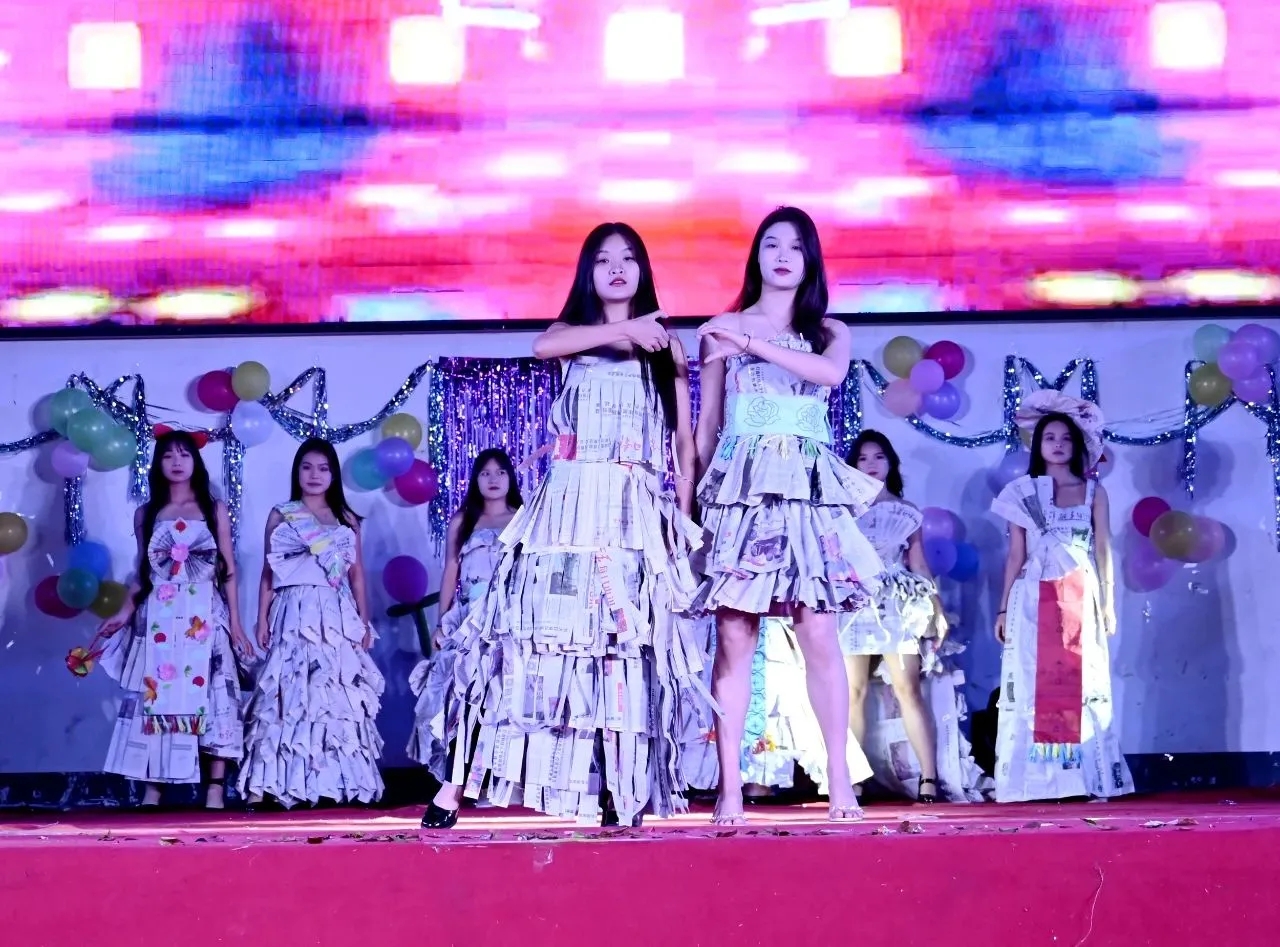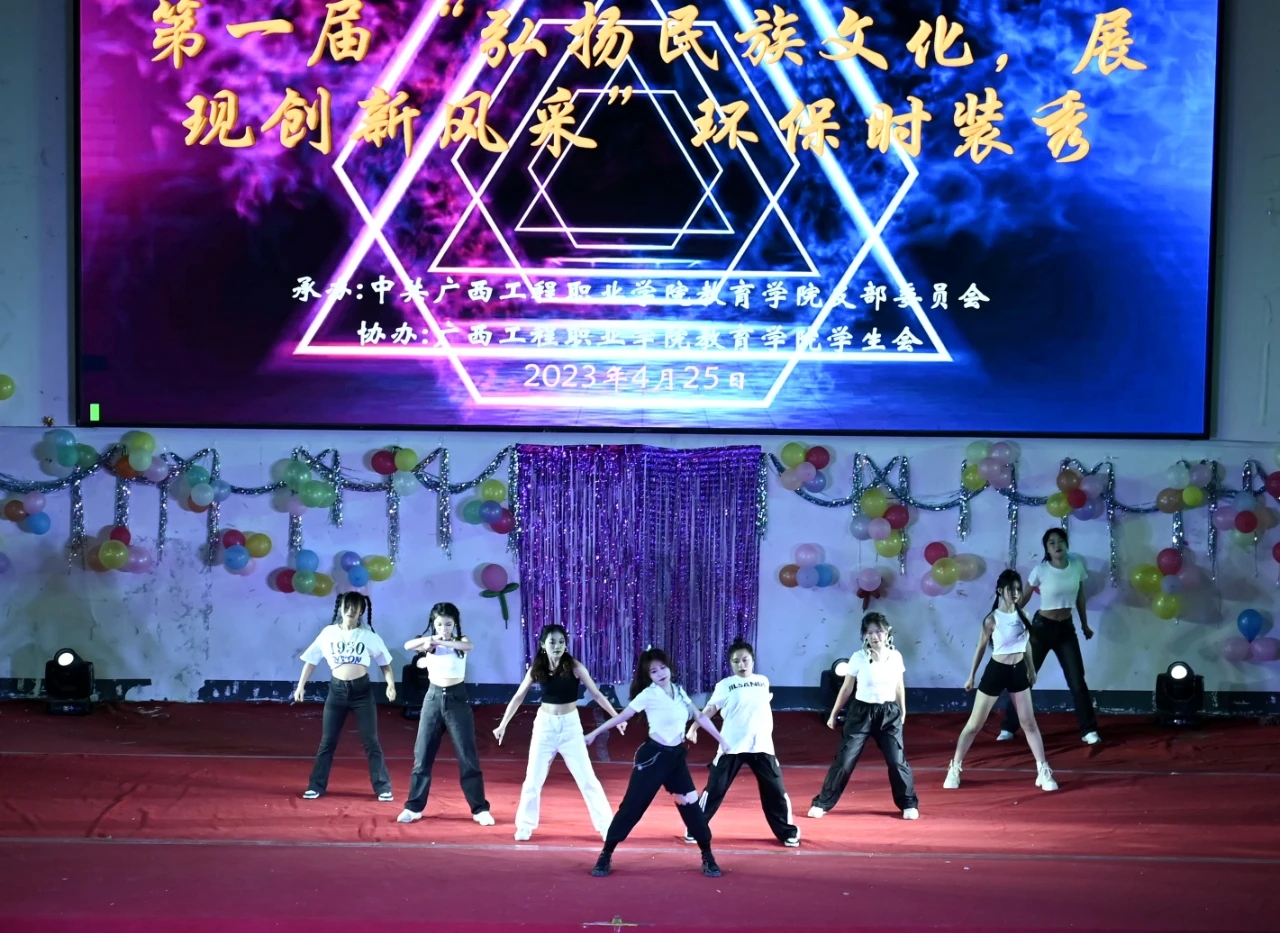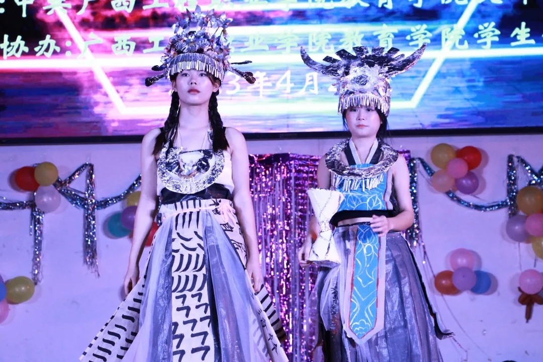 “花開三月三,春光暖人心”,為弘揚民族文化,傳承民族精神,提高同學(xué)們的環(huán)保意識,培養(yǎng)和激發(fā)同學(xué)們的創(chuàng)新意識和實踐能力,提倡和宣傳合理利用綠色資源的環(huán)保理念。2023年4月25日晚,廣西工程職業(yè)學(xué)院教育學(xué)院在體育館舉行第一屆“弘揚民族文化,展現(xiàn)創(chuàng)新風(fēng)采”環(huán)保時裝秀。