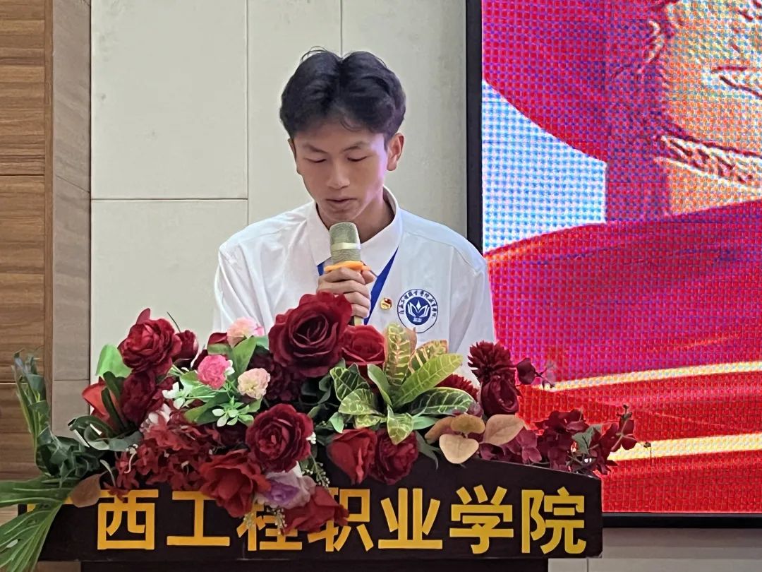 (學(xué)生會(huì)新一屆主席團(tuán)成員韋冬偉宣讀倡議書)