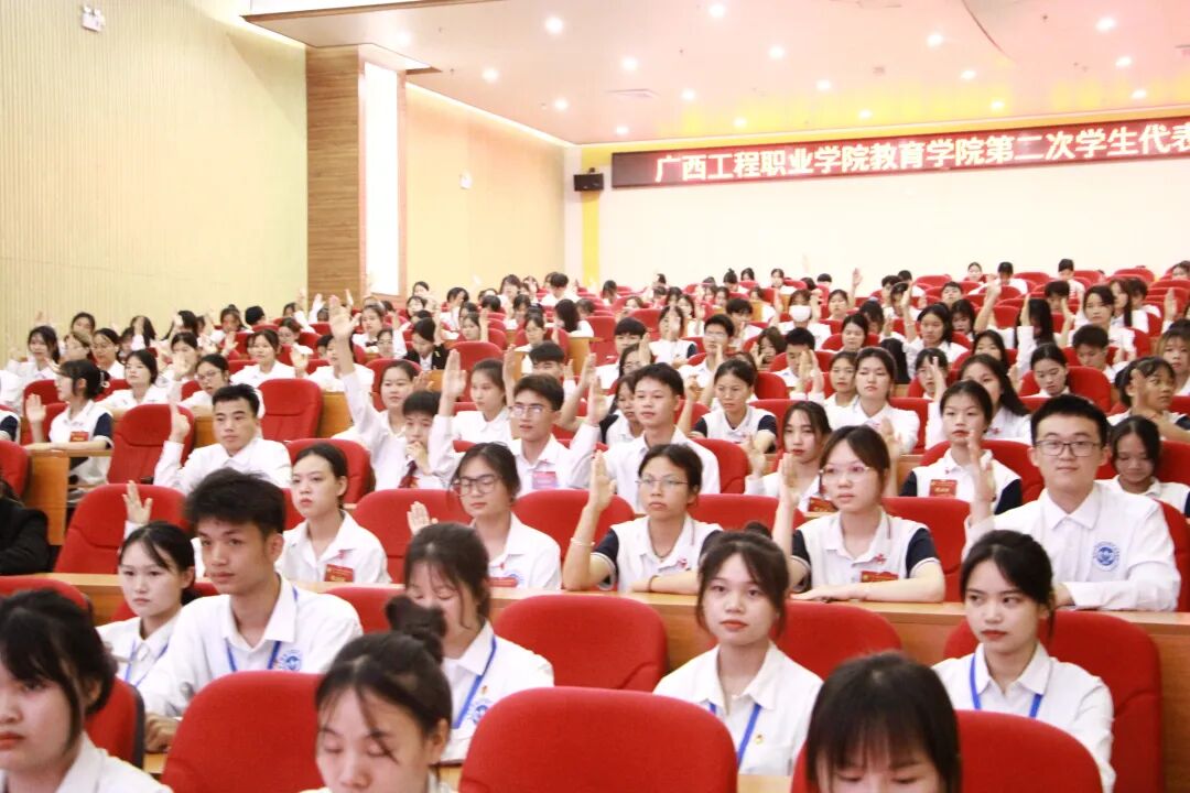 閉幕時(shí),何永芳老師表決了《關(guān)于<廣西工程職業(yè)學(xué)院教育學(xué)院第四屆學(xué)生會(huì)工作報(bào)告>的決議(草案)?
