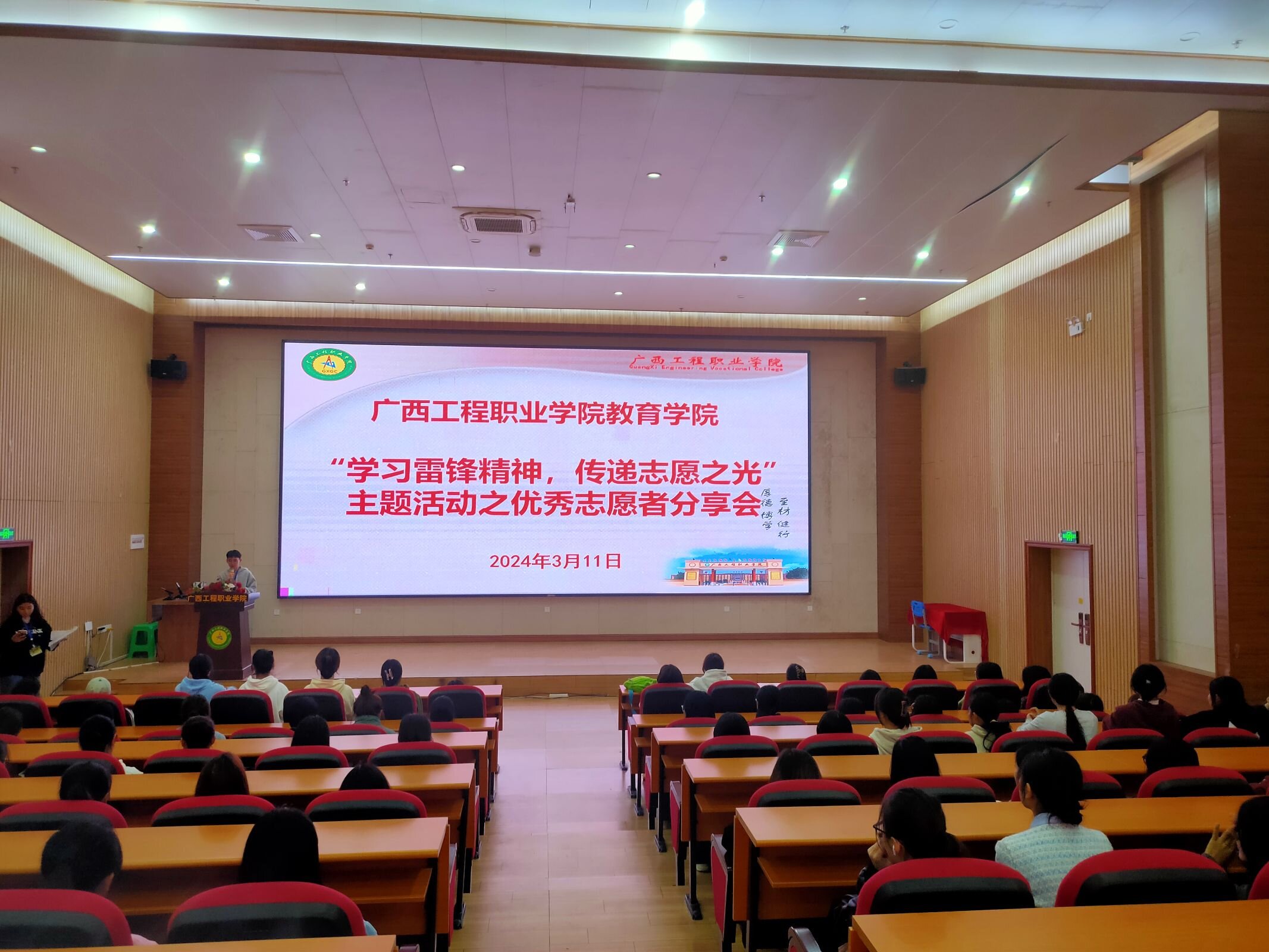 為了弘揚(yáng)雷鋒精神,推動志愿服務(wù)工作的深入開展,提升志愿者的服務(wù)熱情與能力。2024年3月11日下午6點(diǎn)20分,廣西工程職業(yè)學(xué)院教育學(xué)院組織300名學(xué)生在圖文信息大樓一樓學(xué)術(shù)報(bào)告廳開展了“學(xué)習(xí)雷鋒精神,傳遞志愿之光”主題活動。