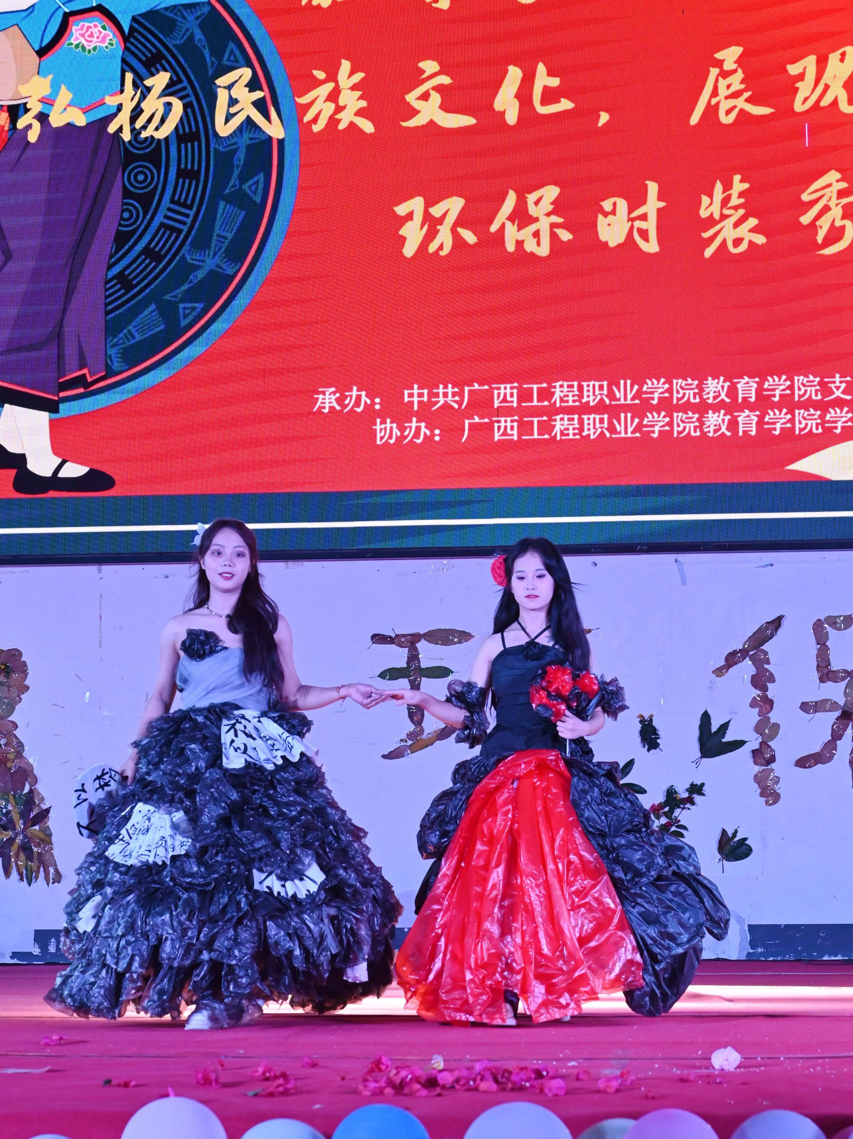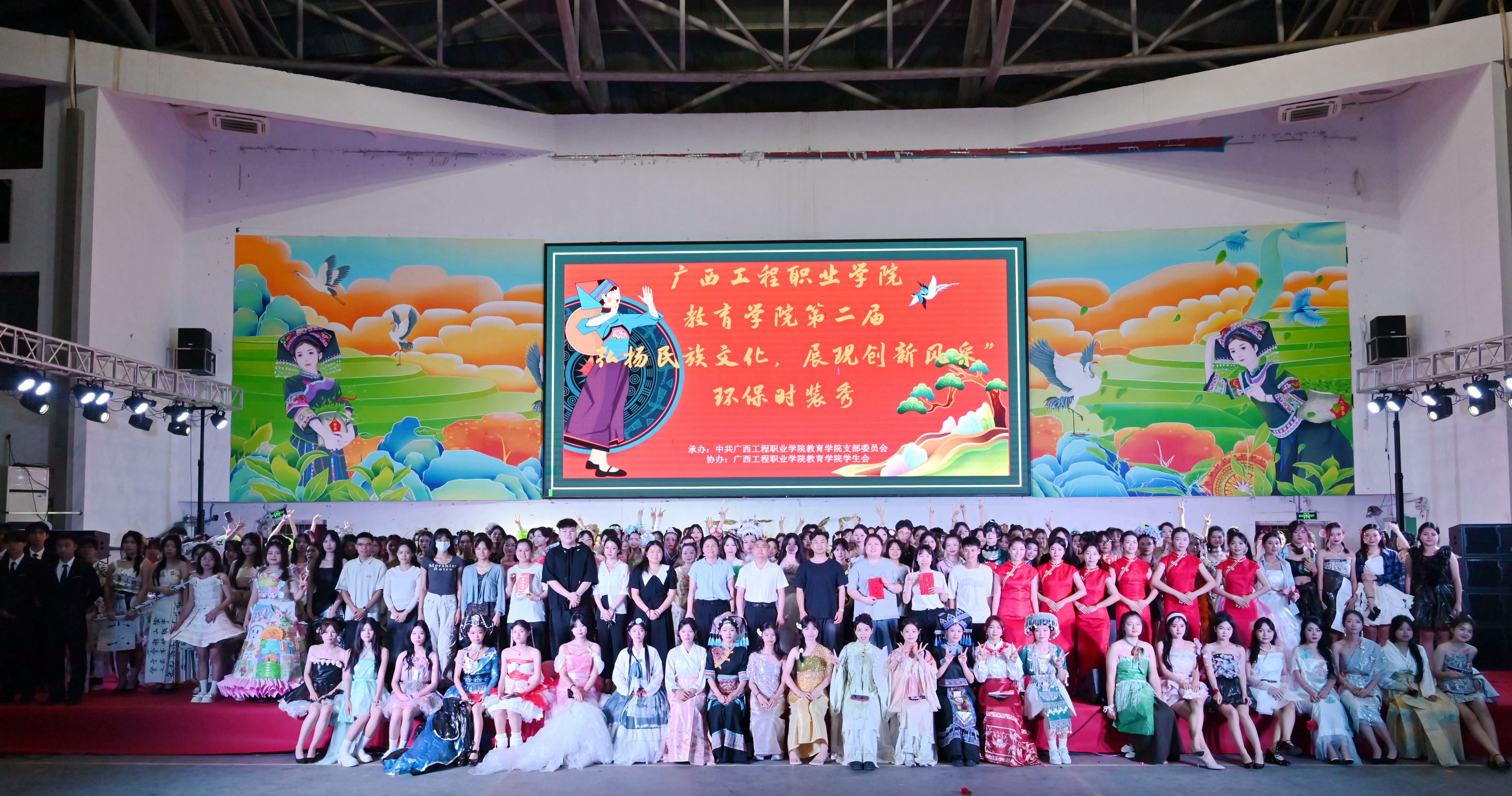 2024年4月2日晚,廣西工程職業(yè)學(xué)院教育學(xué)院在體育館舉行第二屆“弘揚民族文化,展現(xiàn)創(chuàng)新風(fēng)采”環(huán)保時裝秀。學(xué)校副董事長林艷,紀委書記、副校長彭高彬,校長助理梁善雅,教育學(xué)院黨支部書記、院長梁鳳琴等領(lǐng)導(dǎo)干部出席活動現(xiàn)場,教育學(xué)院全體教師及各學(xué)院學(xué)生代表到現(xiàn)場觀看環(huán)保時裝秀。