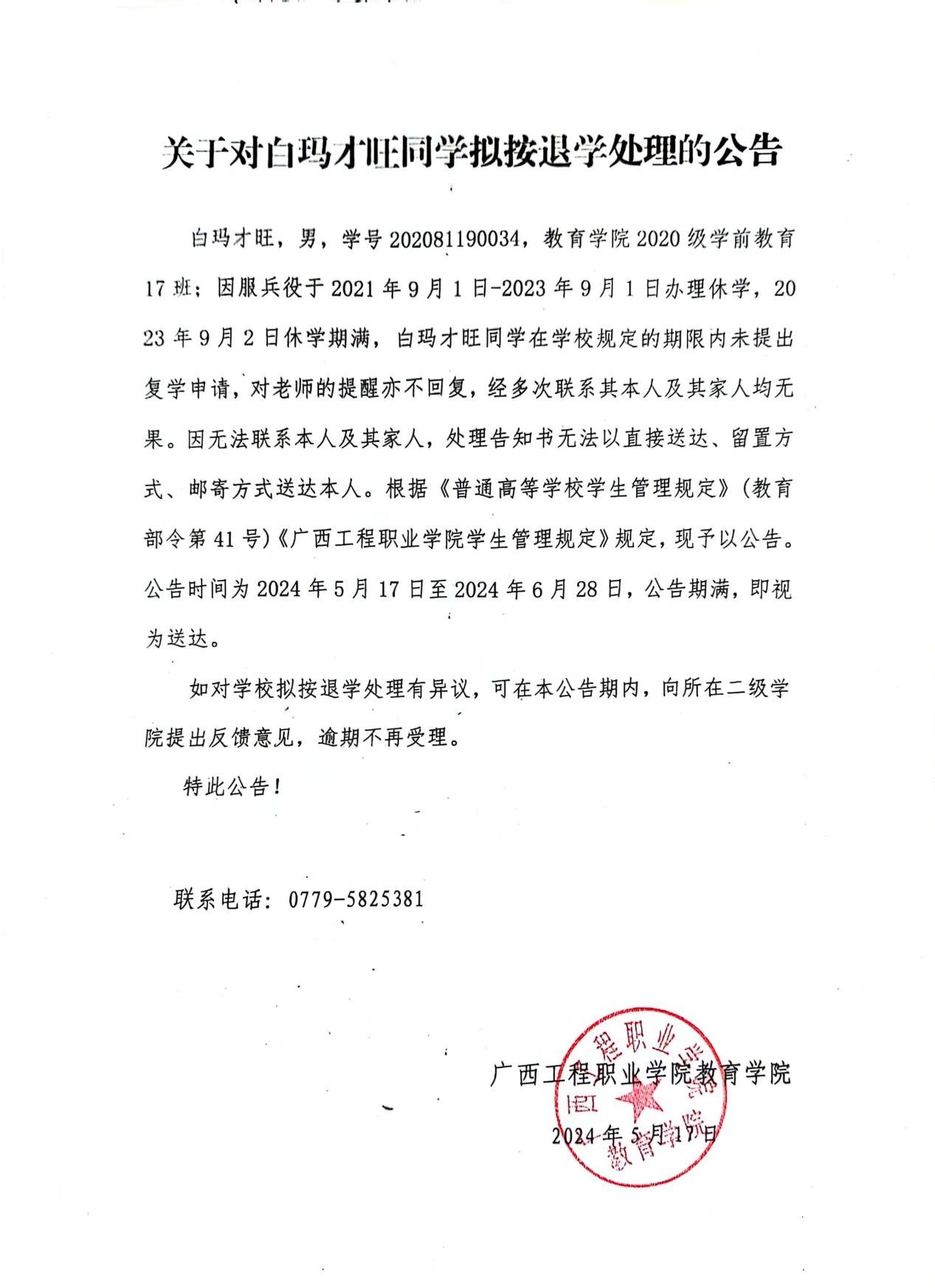 下一篇:關于對周海敏同學作擬按退學處理的公告